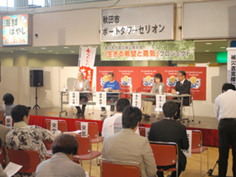 2013年2月9日、釜石市で「被災地支援シンポジウム」を行った。被災地で支援活動を行っているボランティア団体と秋田・青森県の自殺予防民間団体との意見交換会である。秋田・青森県の民間自殺予防団体は、これまでも釜石市の仮設住宅を訪問して住民相談に応じてきた。個別団体で2年間行ってきた被災者支援を秋田・青森・岩手県の北東北3県が連携して被災者支援活動を行う組織作りを提案した。参加団体は秋田9団体、青森3団体、岩手3団体である。今後は団体の拡大を目指す。各団体の情報交換が主目的であるが、25年度はソレイユネット(フランス語で太陽の意)が主催のシンポジウムを1回、「いのちの総合相談会」を2回行う予定である。